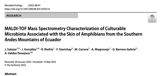 MALDI‐TOF Mass Spectrometry Characterization of Culturable Microbiota Associated with the Skin of Amphibians from the Southern Andes Mountains of Ecuador