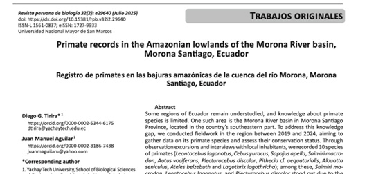 Registro de primates en las bajuras amazónicas de la cuenca del río Morona, Morona Santiago, Ecuador